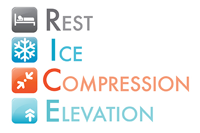 - Ice pack application (to reduce swelling that occurs within hours of the injury)